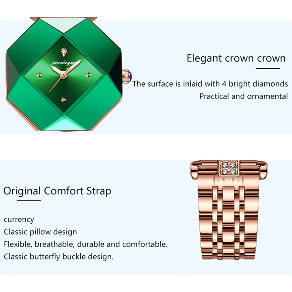 - Mesmerizing Green Diamond Accents – Eye-catching emerald-toned crystals create a unique, luxurious look that sets you apart from ordinary timepieces