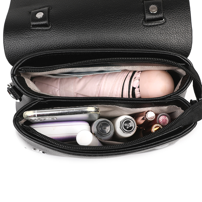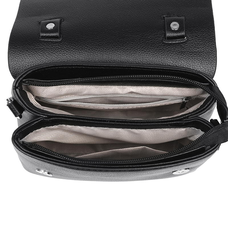 - Elegant flap design creates timeless sophistication with secure zipper and hasp closure system