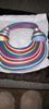 I love this multi-color handbag! Material is of great quality. There is weight to the purse. I just wish that i could fit my phone inside. This handbag is definitely a "statement piece!" I love it so much, i may order the black & white color next!