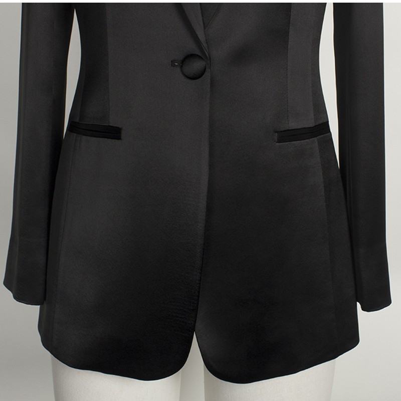 The Luxury of Satin in Professional Wear: Satin brings an element of luxury that sets this blazer apart from ordinary business wear. The subtle sheen adds visual interest without being flashy, creating a sophisticated look that photographs beautifully and makes lasting impressions.