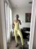 Incredibly beautiful suit. Very beautiful yellow color, not bright, but more pastel. Sits well on the figure and highlights it. The fabric is pleasant to the body and elastic. The size fits perfectly, I checked the seller's measurements.