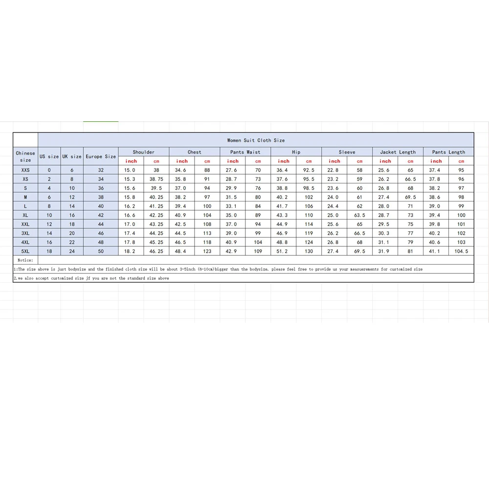 We want you to love your new elegant pantsuit! Please take a moment to compare our size chart with your favorite fitting garments to ensure the perfect fit. As with all fashion items, measurements may vary by 1-3cm due to different measuring techniques – this is completely normal! Taking 30 seconds to double-check sizing helps guarantee you’ll absolutely love how this gorgeous piece fits and feels. Your perfect fit is our priority!