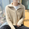 Women Merino Wool Knitted Cardigan Autumn Winter Lapel Collar Long Sleeve Zipper Sweater Casual Thick Warm Top