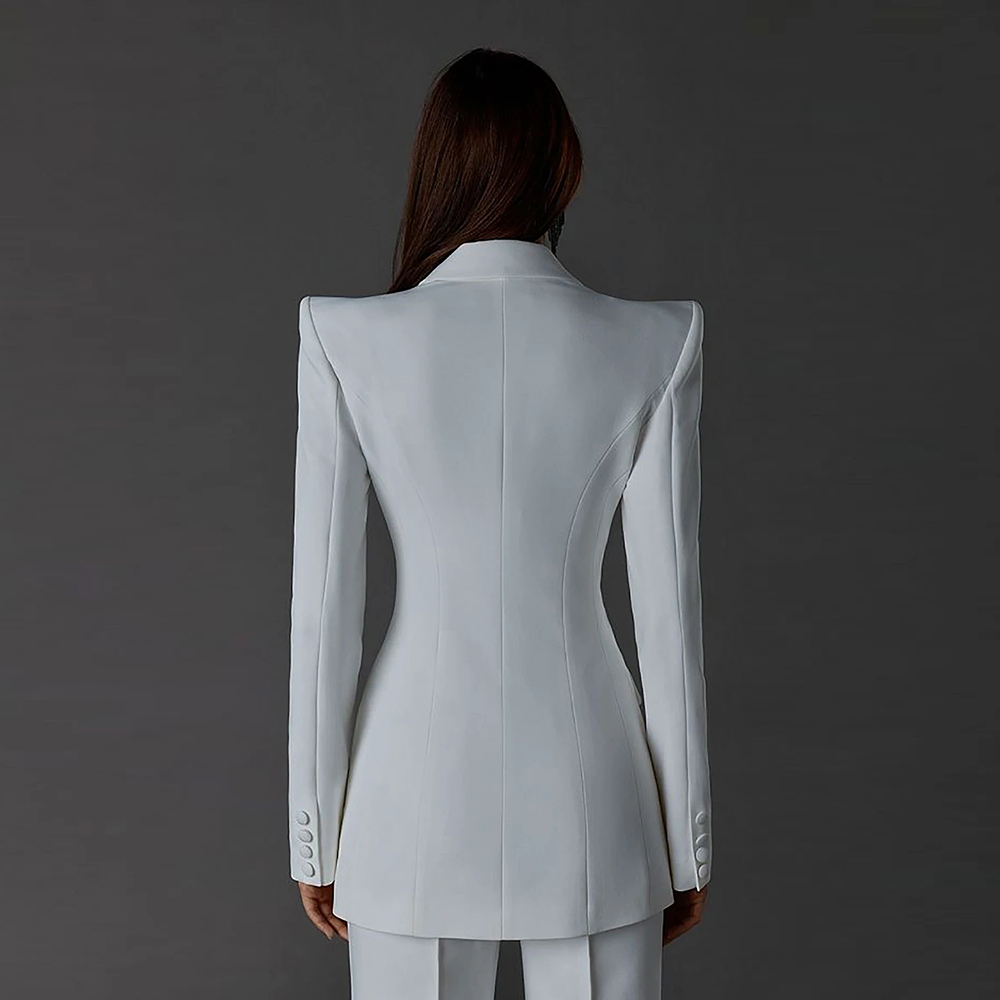 Women Pantsuit 2 Piece Set Blazer Skinny Pants Single Breasted Evening Party Formal Tailored